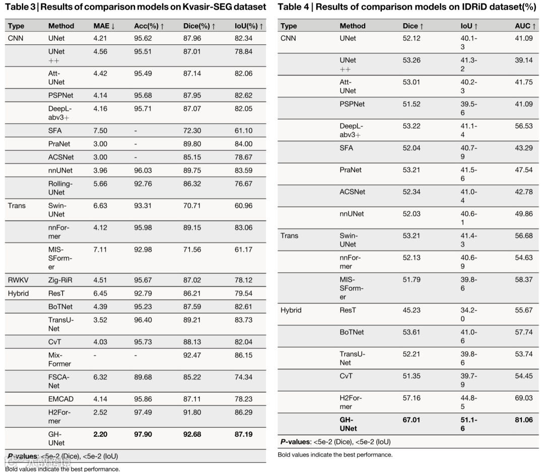 在Kvasir-SEG和IDRiD两个数据集上的实验也证明了GH-UNet模型的优越性。