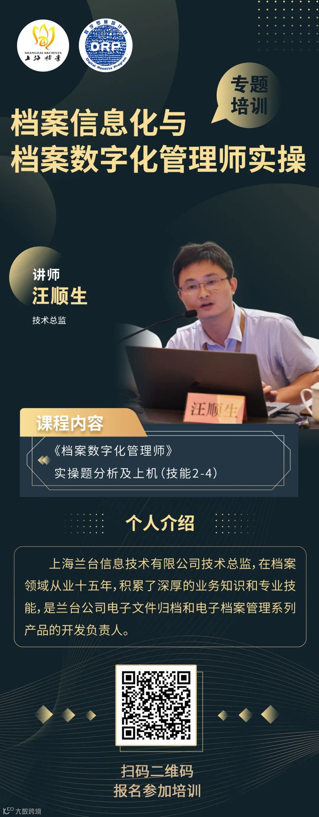 2025年11月17日至11月21日,上海市档案服务和教育中心举办的“档案信息化与档案数字化管理师实操”专题培训班即将在泛微软件园(上海市闵行区三鲁公路3419号)开班。
