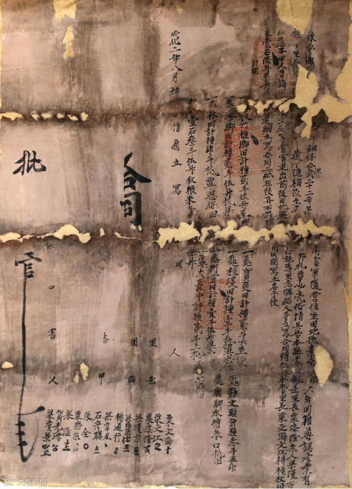 ▲ 清乾隆十四年(1749年)因开垦粮田引起争执而进行调解的和合契约