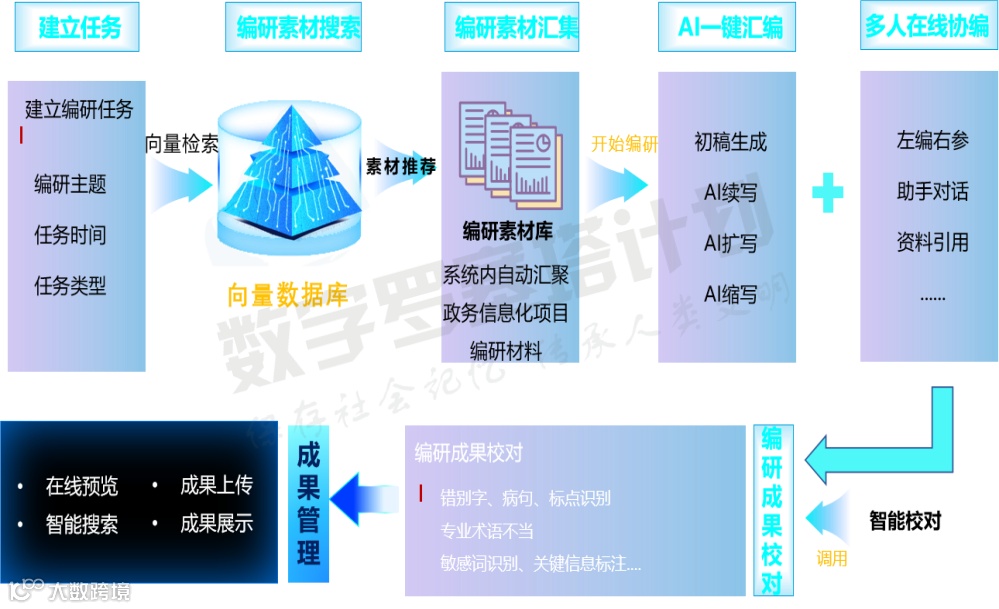 系统构建编研任务全流程管理体系,支持从任务创建到成果发布的完整业务闭环,可自动生成结构化复盘报告与可视化决策简报。通过跨年度、多项目数据整合,辅助年鉴编制,有效提升管理效率、优化资源配置,支撑战略规划与绩效评估。