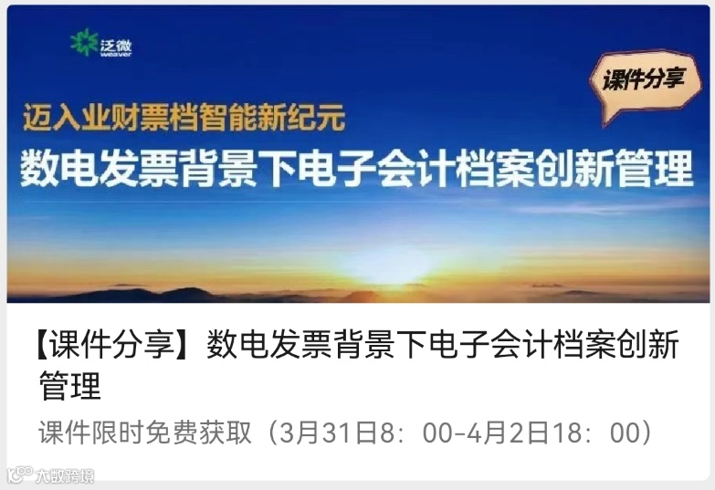 本场课程数字罗塞塔计划视频号安排了直播,相关课程内容及课件下载可查看往期文章《【课件分享】数电发票背景下电子会计档案创新管理》。(特别提醒:课件限时获取,需尽快领取)