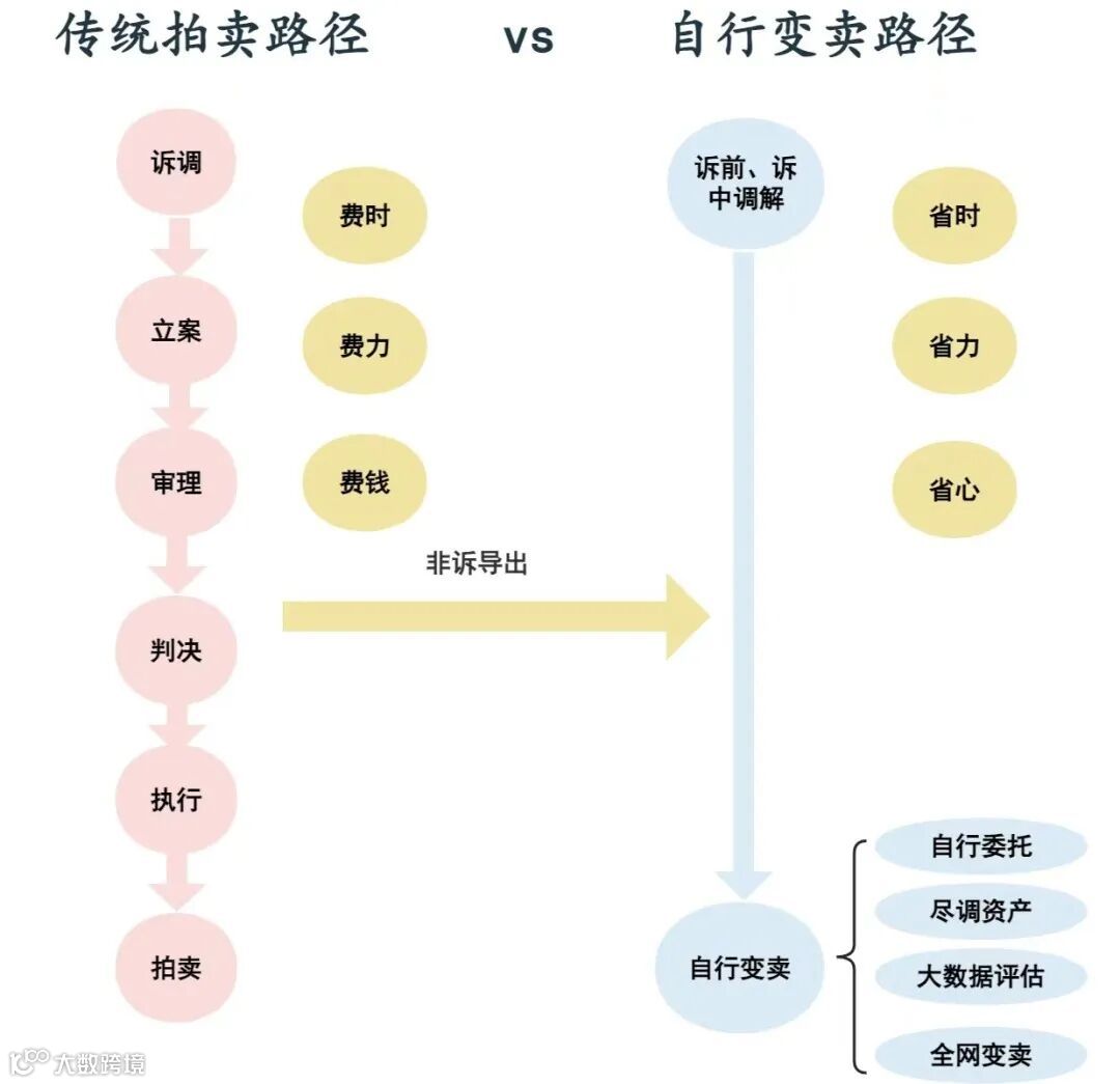 相较于法院传统的“调+立+审+判+执”审判思路,“多元解纷+淘宝自行变卖”以互联网、大数据及智能化系统为依托,在诉前、诉中对纠纷进行化解,具有明显的优势: