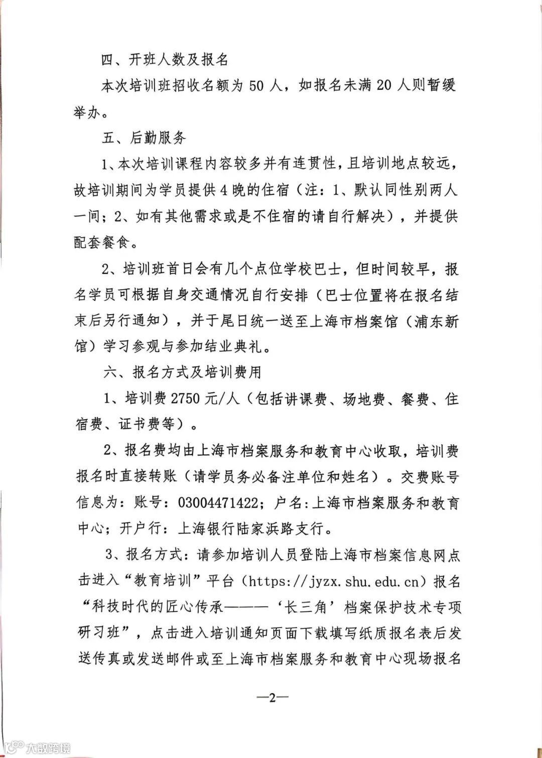 为贯彻落实上海市档案局《“十四五”时期国家重点档案保护与开发工作实施方案》要求,进一步弘扬优秀传统文化,传承工匠精神,强化档案保护从业者专业水平,树立新时代档案保护技术业务范畴与历史使命,上海市档案服务和教育中心拟于2025年6月30日至7月4日举办“科技时代的匠心传承———‘长三角’档案保护技术专项研习班”。研习班将邀请上海交通大学、上海大学、上海市非遗传承单位、代表性企业的保护技术领域资深专家进行授课。