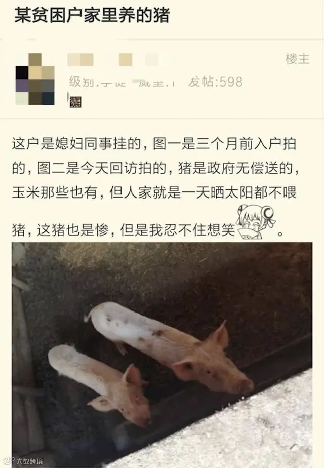 有个贫困户,人家工作组无偿送猪给他,连喂猪的玉米都包了。