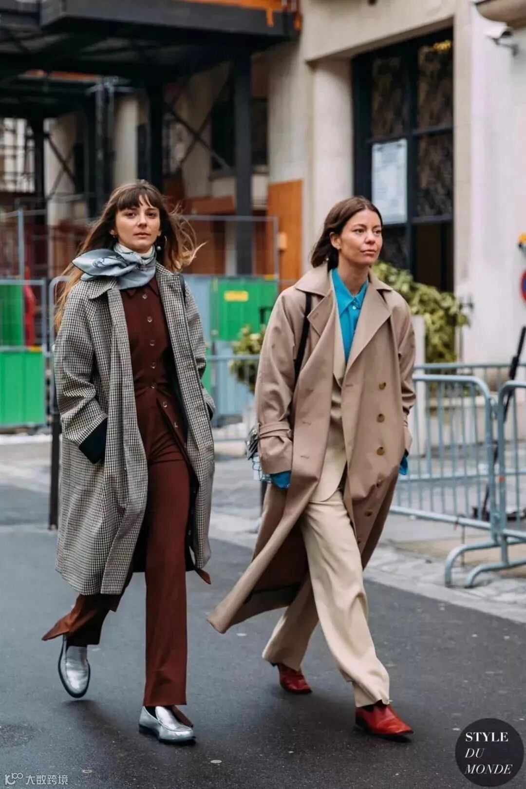 除了西装外套,风衣也可以说是时髦精们必备的一件外套了,风衣无论是和连衣裙还是半身裙,都能自带优雅。