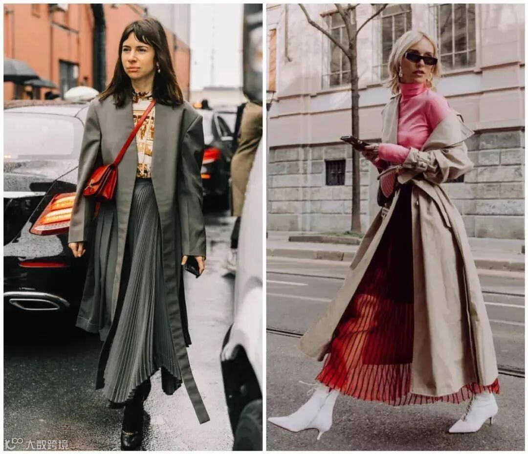 风衣+百褶裙,两件都是我们衣橱里出镜率比较高的单品,加起来就是神仙组合,选择有质感的单品尤为重要。