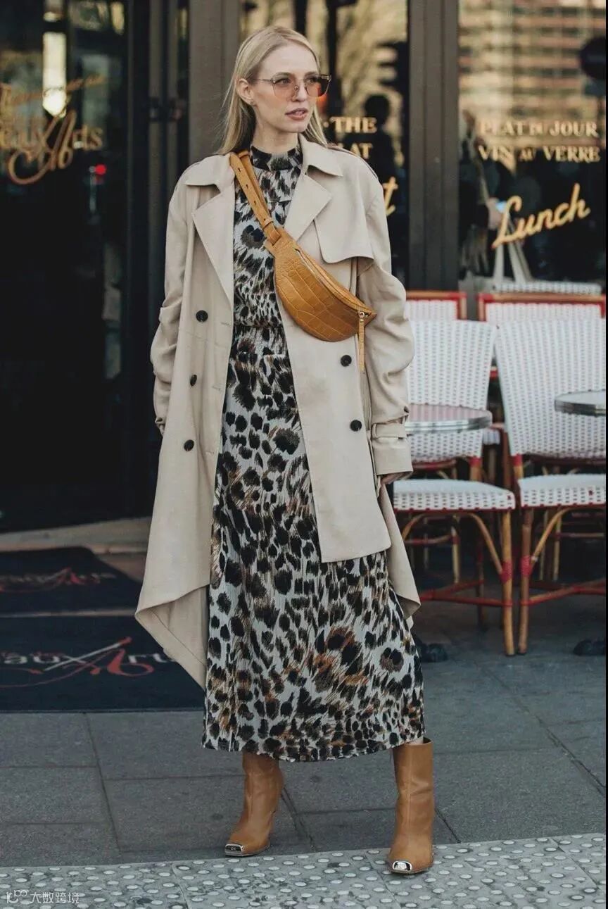 反之亦然,风衣比较纯色简约的,内搭就可以大胆尝试豹纹这种比较张扬的风格。普通人难以驾驭复杂款式的,切记身上不要超过三种颜色。