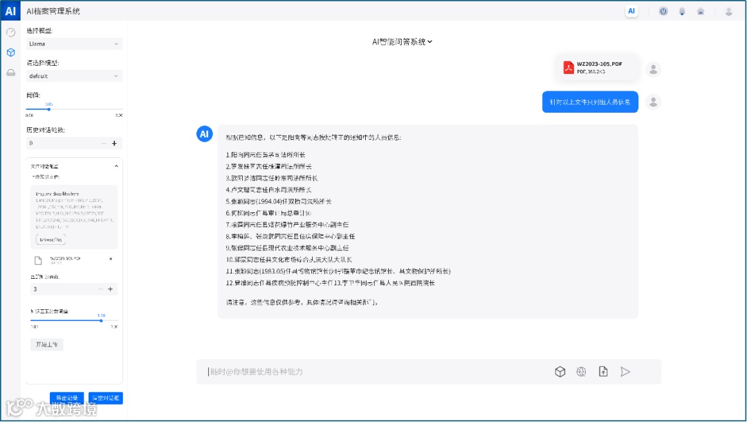 依托档案大模型,就可以赋能档案自动整理、AI智能问答、智慧编研等创新应用场景了,从而实现档案高效管理。