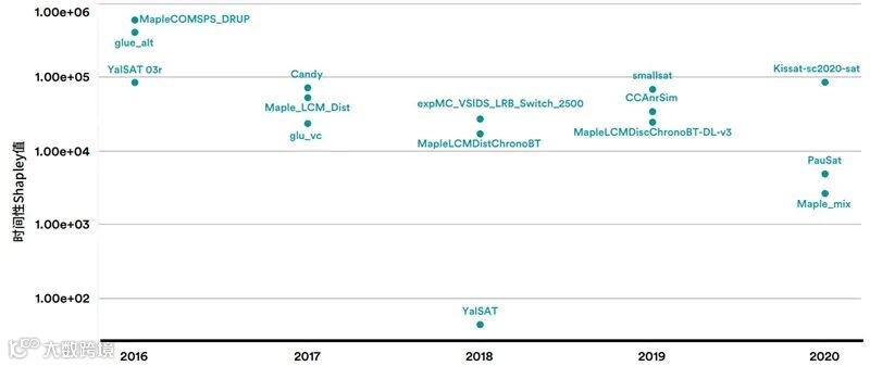 ▲2016-20年单个解算器对性能改进的时间夏普利价值贡献(越高越好)