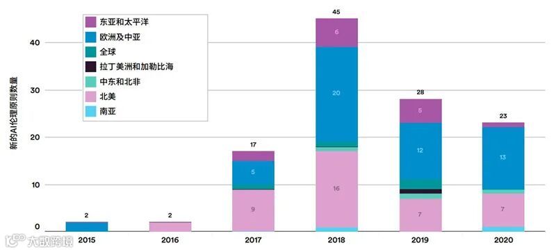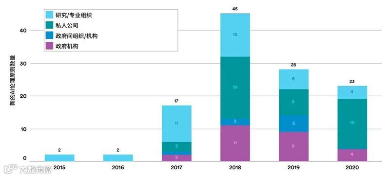 ▲2015-20年按组织类型划分的新AI伦理原则数量