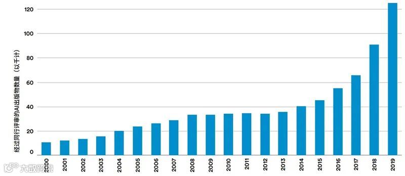 ▲2000-19年经同行评审的AI出版物(占总数的百分比%)