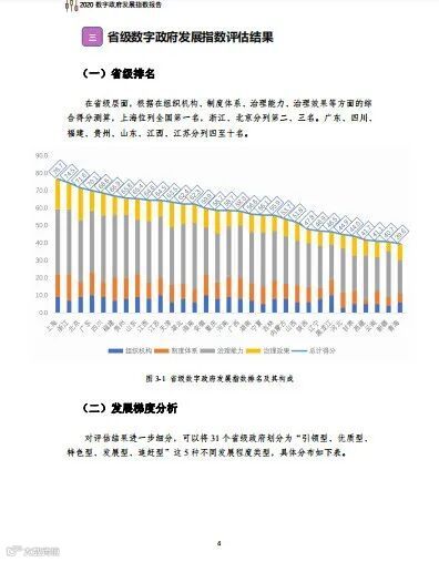 四是为缩小区域发展不平衡提供靶向。各地由于 数字治理的基础和资源存在差异,数字政府发展进度参差不齐。数字政府发展指 数以赋分形式清晰呈现各省、各城市当前得分情况,可精准激励和帮扶部分省市 加快推进数字政府发展。