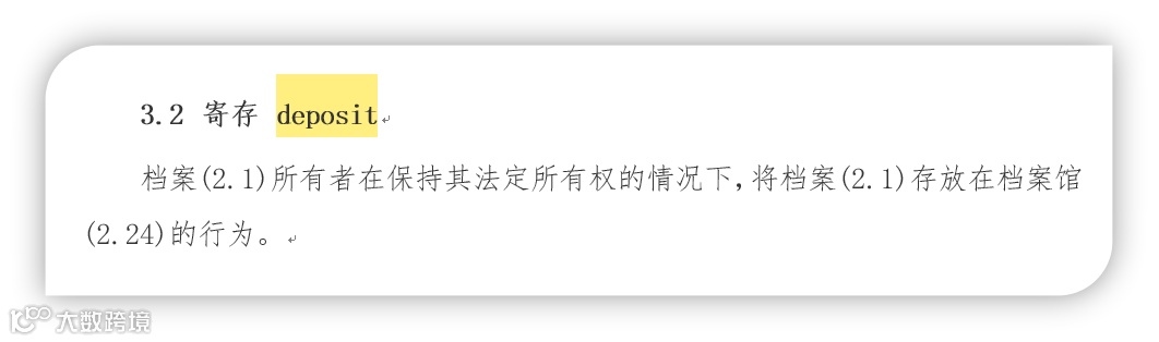 “存放”和“存储”的英文都是“Storage”,对于存在一定用词洁癖的笔者而言,始终感觉不是很舒服。一开始笔者为了以示区别,想用“Deposit”来表示“存放”,结果发现DA/T 1-2000已经存在“Deposit”,用来表示的是“寄存”: