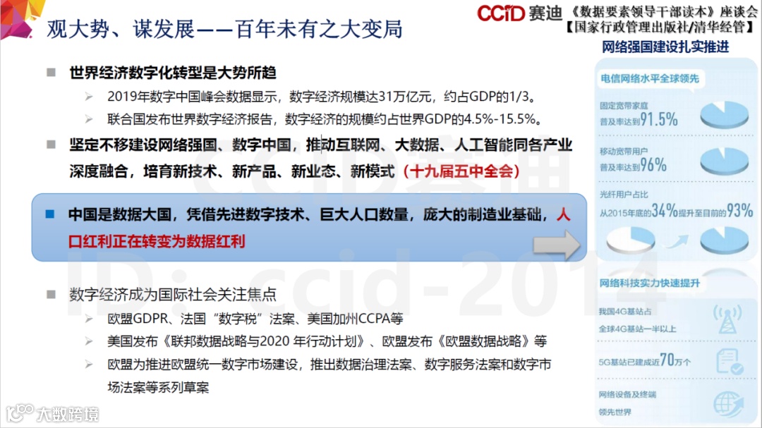 凭借先进技术、巨大人口基数、覆盖面广的制造业基础,中国正从人口红利转向数据红利,如何将数据红利转化为新发展动能,是转换新赛道、占领制高点、开辟新市场的战略抉择。这是中华腾飞千载难逢的战略机遇期。
