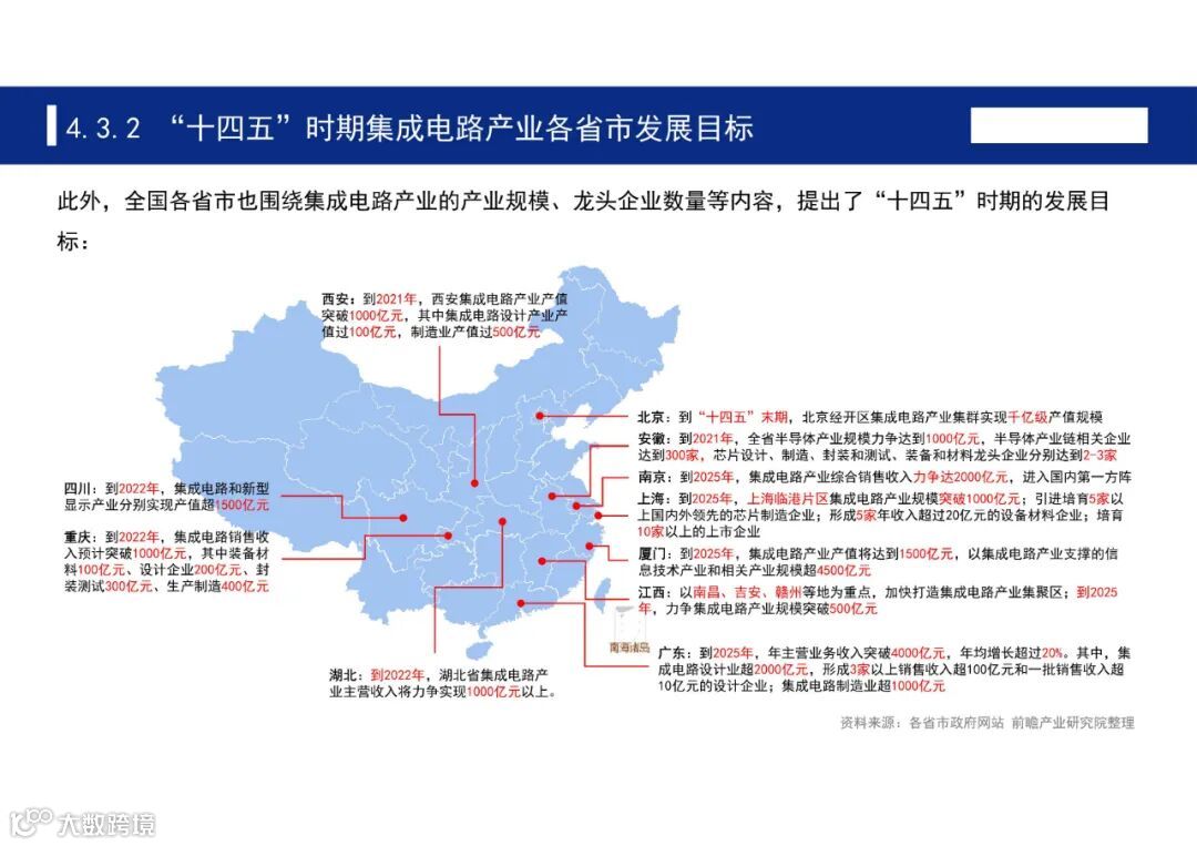 此外,全国各省市也围绕集成电路产业的产业规模、龙头企业数量等内容,提出了“十四五”时期的发展目标。
