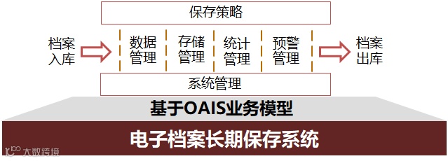 电子档案长期保存系统的功能设计可以参考OAIS模型,功能框架示意如下图所示: