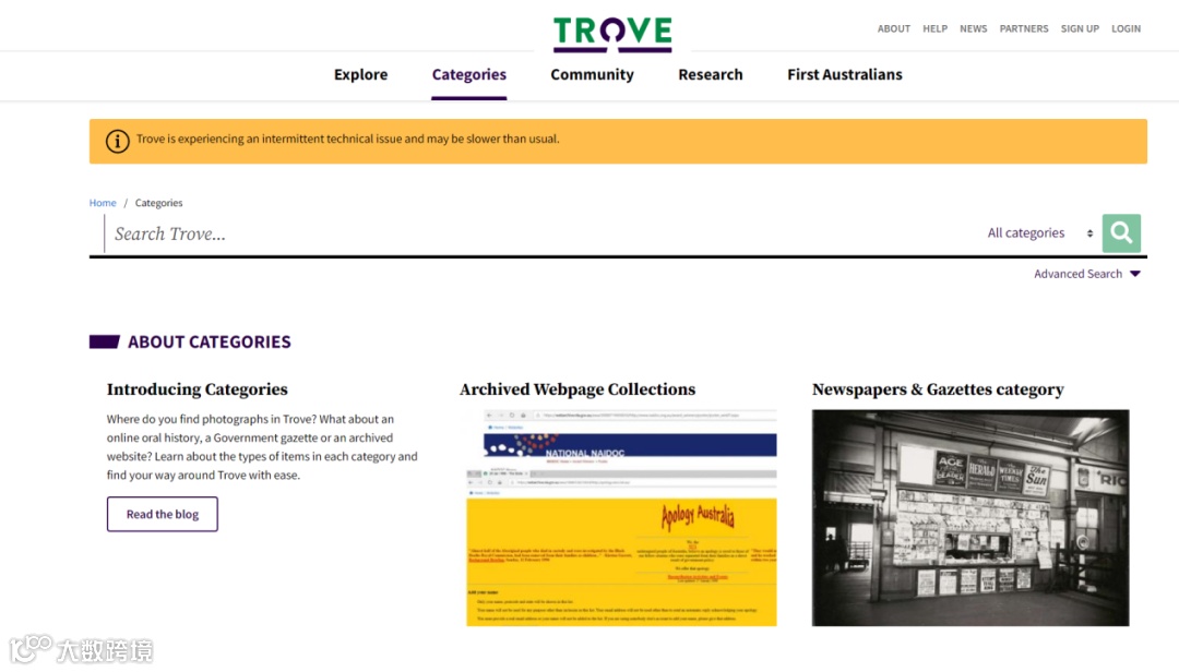 同时NLA建立了PANDORA的专题网站:Trove(http://trove.nla.gov.au/website)。可以从项目的主页上访问到这些存档文件。可用的访问路径有:PANDORA主页上的存档标题的字母列表;PANDORA主页上存档标题的主题列表,分为文化、艺术、科学等18个大类;国家书目数据库和其他参与者的在线目录的热链接;商业搜索引擎(如Google,Bing)可以搜索到存档文献的标题。PANDORA在收割采集时已将存档文献编目、存档资源作为NLA有效馆藏资源的一部分,可输入任意词检索。