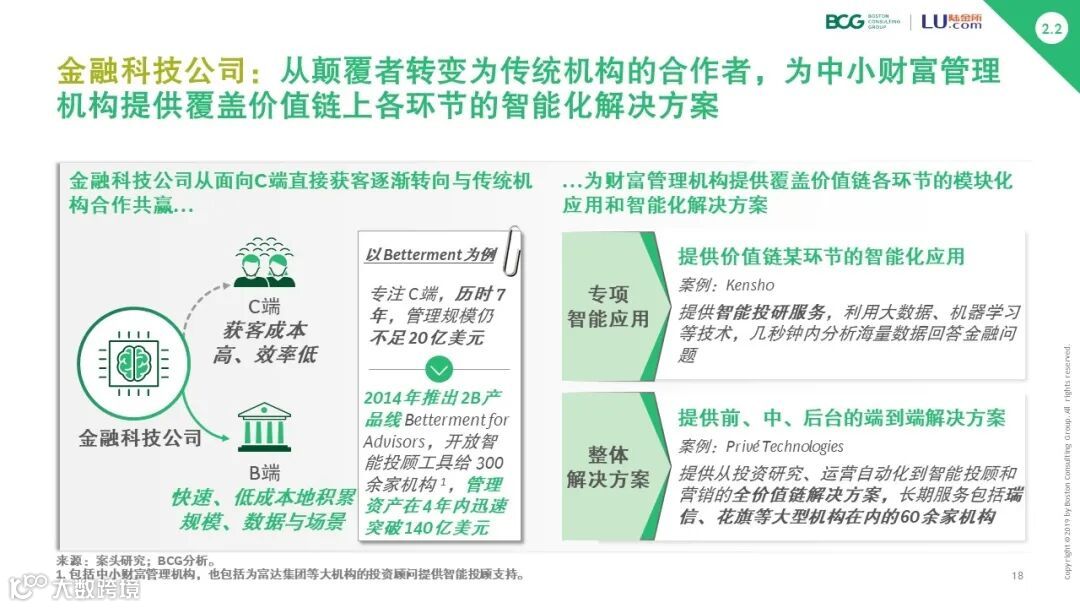 随着智能化时代正式来临,整个金融行业正在经历前所未有的全方位变革:金融服务从线下网点延伸至无处不在,年轻客户展现出高度数字化和个性化的需求与偏好,新兴技术的快速成熟让许多应用从梦想走进现实。在这样的宏观环境之中,财富管理市场也正快速步入技术和数据驱动的全面智能化时代。各类财富管理机构将充分利用金融科技的力量,让普惠大众客群也能享受到更加专业、个性、智慧的财富管理服务和以移动端为核心的极致数字化体验。