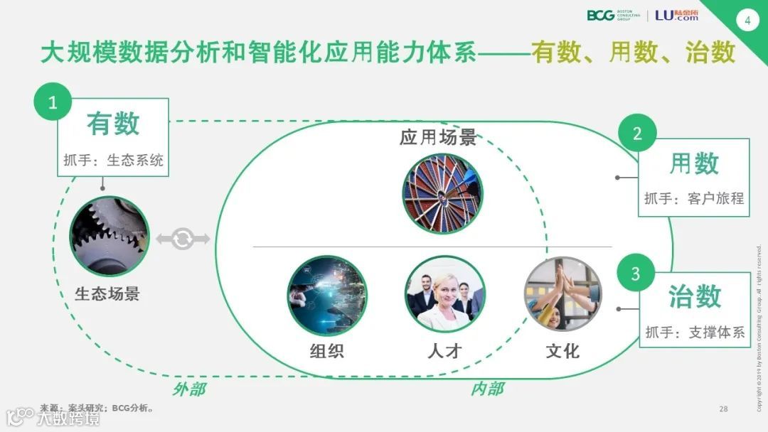 构建开放生态、重塑客户旅程、匹配支撑体系。首先,场景和数据是智能化的基础。通过打造开放生态、构建和连接场景,机构才能持续获取高质量、多维度的数据。其次,机构需要真正以客户为中心,开展端到端、全方位的旅程重塑与共建,串联起有价值的数据应用场景,才能体现智能化的价值。最后,机构需要一套行之有效的“治数”体系,打造数据驱动的组织、匹配适宜的人才和文化,才能真正聚沙成塔、形成可规模化的智能化应用能力。