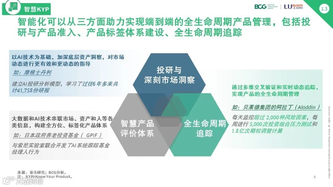 智能化对中国而言是推动财富管理市场真正回归本源并加速发展的核心动力。智能化,在美国是打造差异化竞争优势的杀手锏;在欧洲则是重塑固化格局的牵引力。而资管新规下的中国财富管理市场正开启全面转型,却面临投资者理财观不成熟、广大中产客群缺乏财富规划服务、机构风险管理粗放等客观挑战。智能化技术能够针对性地解决中国市场所存在的上述痛点,例如搭建个性化的内容生态加速投资者教育、借力智能投顾提供普惠化财富规划服务以解决“中产焦虑”、加强智能风控体系实现更加稳健的全面风险管理等。