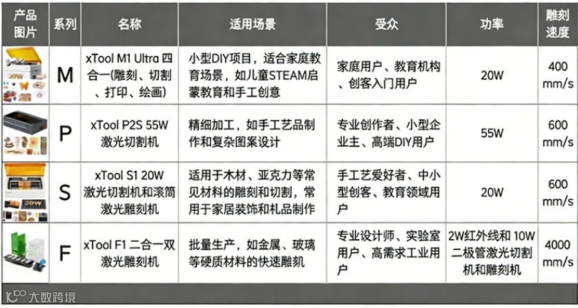 2021年xTool品牌成立,推出首款桌面激光雕刻机xTool D1,“消费级专业工具”定位迅速打开市场。
