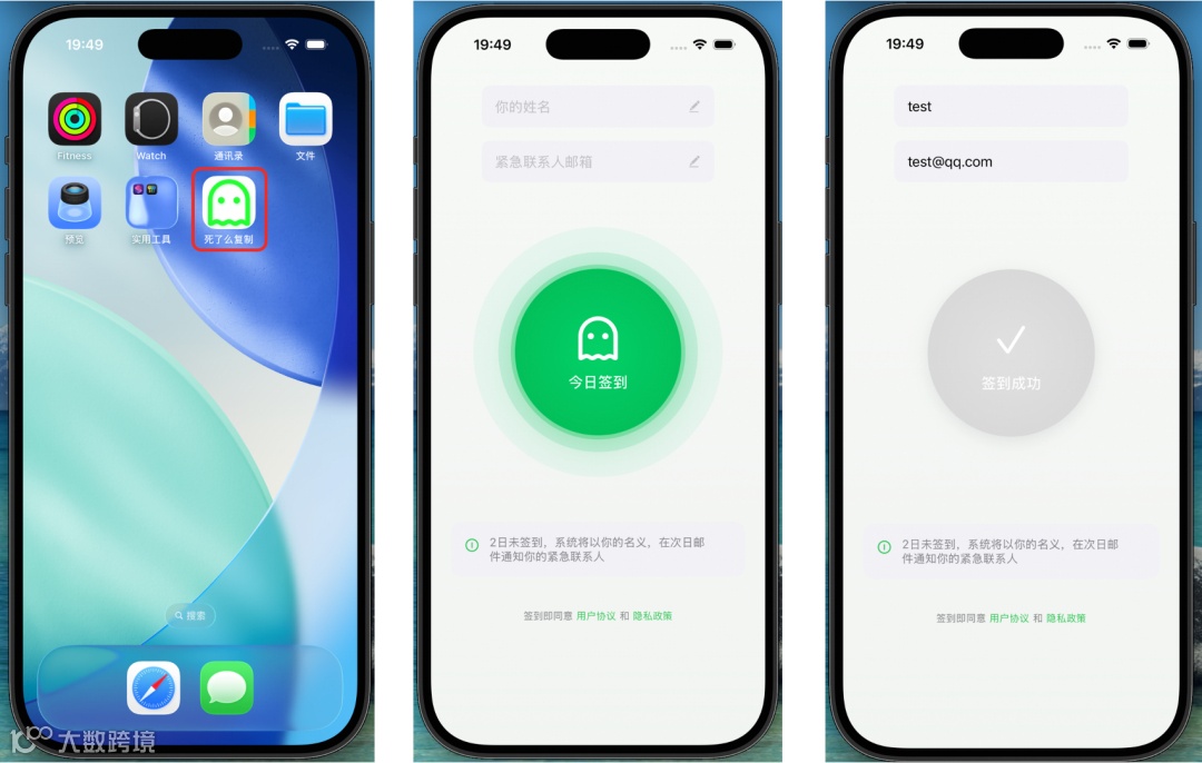 「死了么」上线即登顶AppStore付费榜,核心在于极简功能与强痛点匹配:输入姓名与紧急联系人邮箱,每日一键签到;未签到则触发邮件告警。
