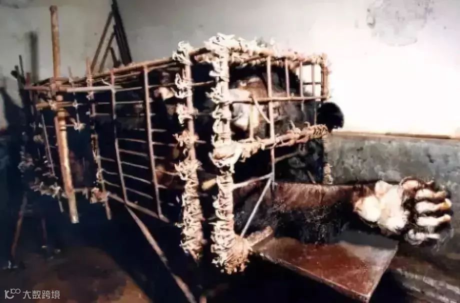 人们把熊囚禁在狭小的笼子里,到了3岁左右就将一个金属管永久地插入熊的胆囊,另一端露在熊的腹部外面,因为伤口常年裸露在外,所以极易感染,患上肝癌;
