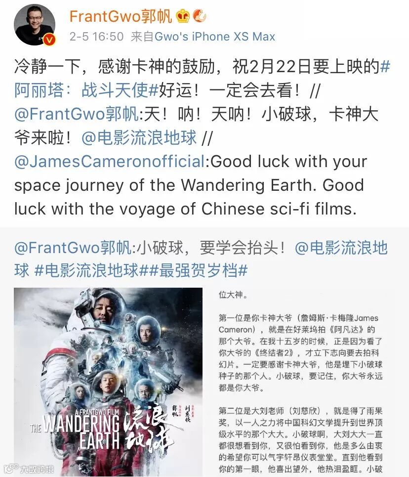 这部电影从开拍以来就多次面临流产,人人唱衰不看好,再到如今有口皆碑、好评如潮,甚至连科幻电影之父,卡梅隆也转发了对电影的看好与祝福。
