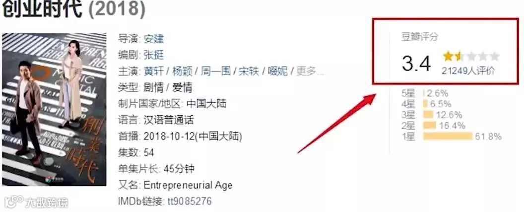 去年她主演的《创业时代》,评分3.4,全网一边倒的骂声,收视率也很低。