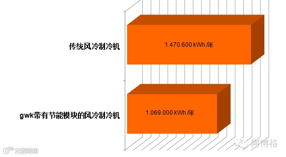 gwk带有节能模块的风冷制冷机 775 kW ,冷水出水温度为15°C,以运行时间为6000小时/年计,