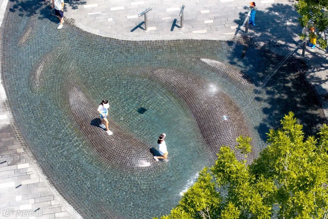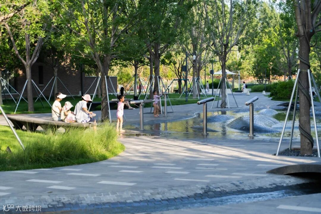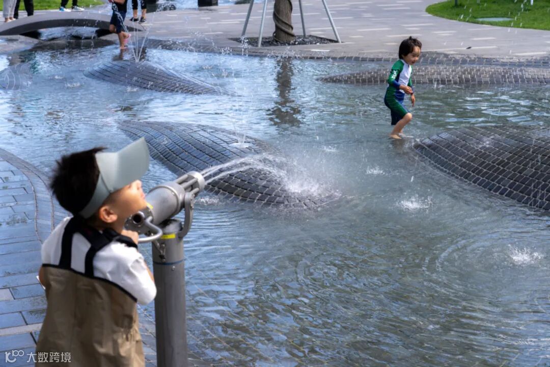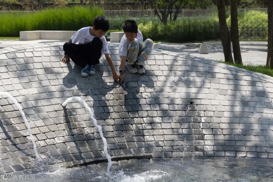 多元的水乐互动体验:北岸嬉水公园的水乐互动体验不仅涵盖了常规的水枪、踩水自行车等活动设施,也进一步探索了人与水之间细腻的感知与交流。这种体验不仅体现在欢闹的嬉水活动中,还渗透于等待、寻找与追逐等行为当中。