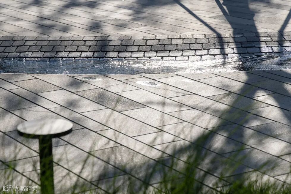 石上清泉:这是北段水系的起点,《园冶》中的“泉流石注,互相借资”就是关于园林中水与石互相借用衬托关系的描述。水从石雕上跌落,也是在场地没有大高差的情景下,营造声景的一种方式。这里还结合了互动装置,突出了流水的动势,也得天然趣味。