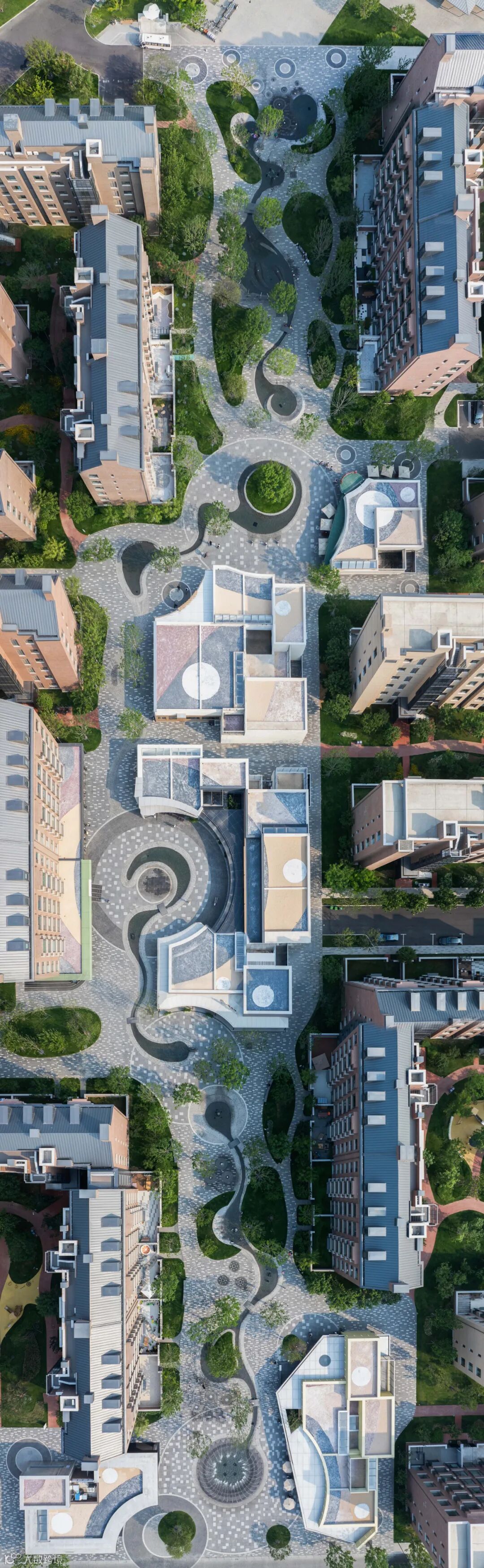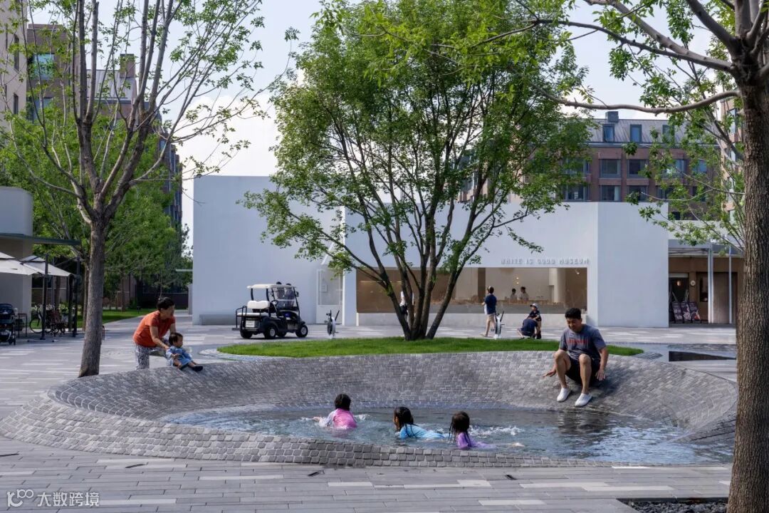 “受‘小桥流水人家’的启发,致舍景观用曲水贯穿场地,营造一个林下无障碍的、老少皆宜的场所,试图在北岸社区中唤起对中国传统家园的记忆、引发人们的情感共鸣。曲水不仅带来动人的景观, 也能成为场所精神的载体,它融合了社区的商业和住宅,通过创造性地营建“溯溪”这一体验路径,将乐园与公园融入在家园之中。”