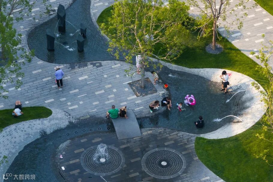 无界与包容:嬉水公园模糊了乐园公园家园的边界, 整条水系是开放、连续的,人们可以沿水而行、涉水溯溪,也可以便捷地从任意方向跨过。