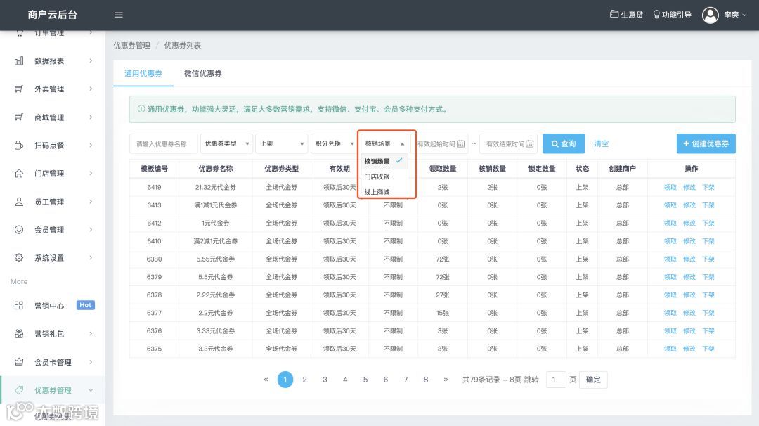 4.优惠券列表支持核销场景筛选,优惠标记迁移到微信优惠券列表展示
