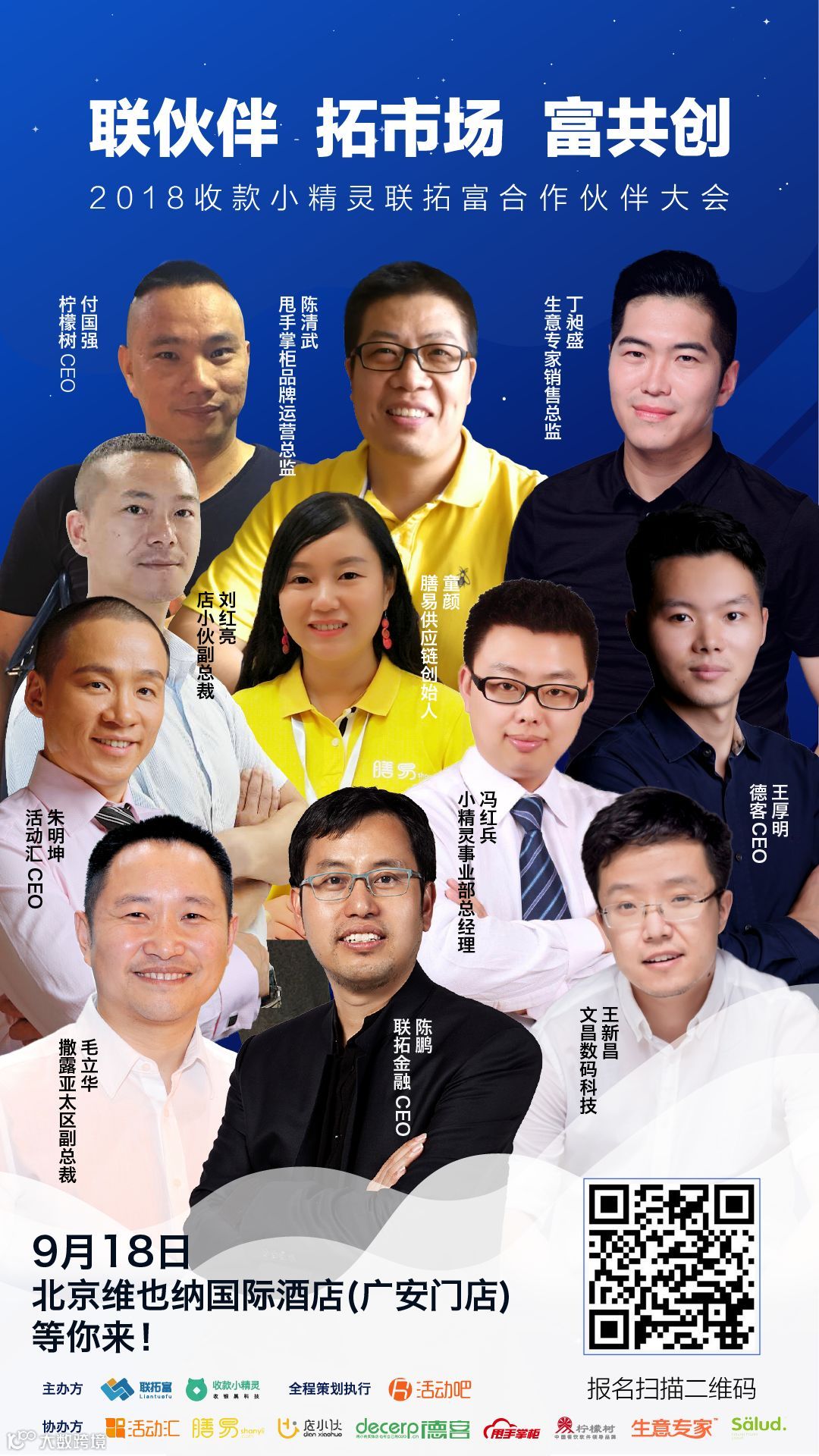 9月18日,“联伙伴、拓市场、富共创——2018收款小精灵联拓富合作伙伴大会”分享对于移动支付下半场服务生态的思考和产品布局,携手联拓富生态合作伙伴,帮助支付服务商深耕移动支付场景,赋能线下商业。