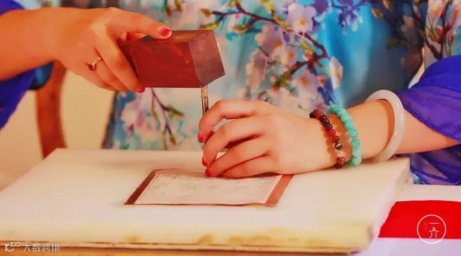 借鉴自唐卡的手法,采用了主体凸起、背景凹下的立体浮雕凿刻方式。矿物质颜料,鲜艳而久不褪色,被她用以衬托剪纸的金色……
