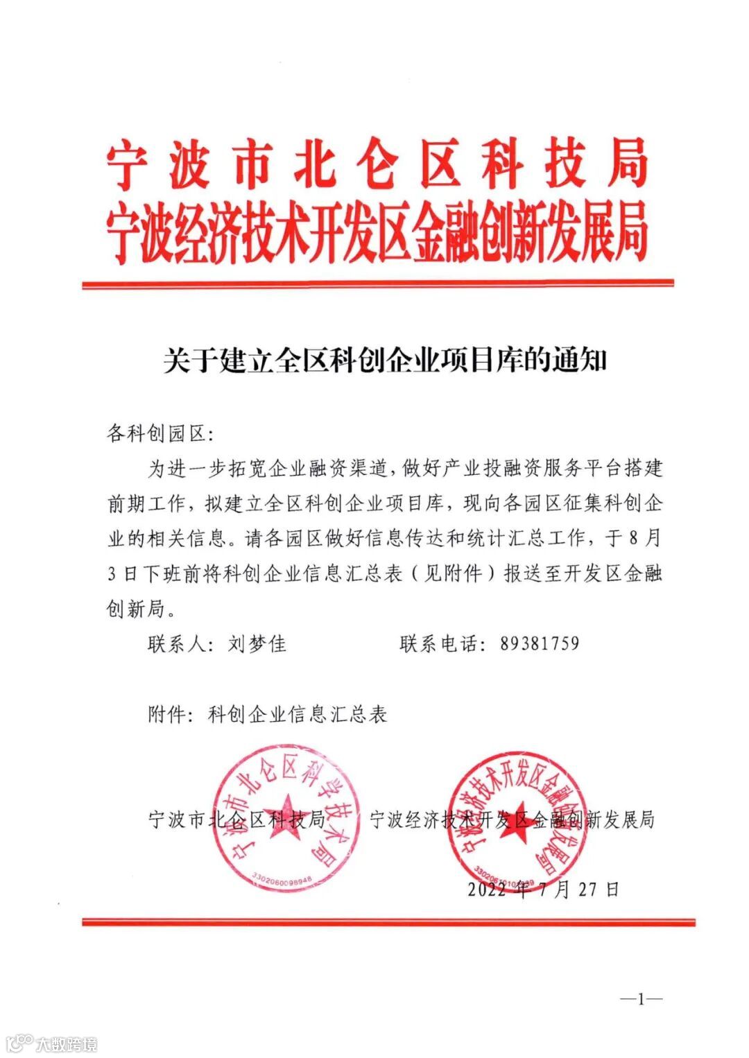 关于建立全区科创企业项目库的通知