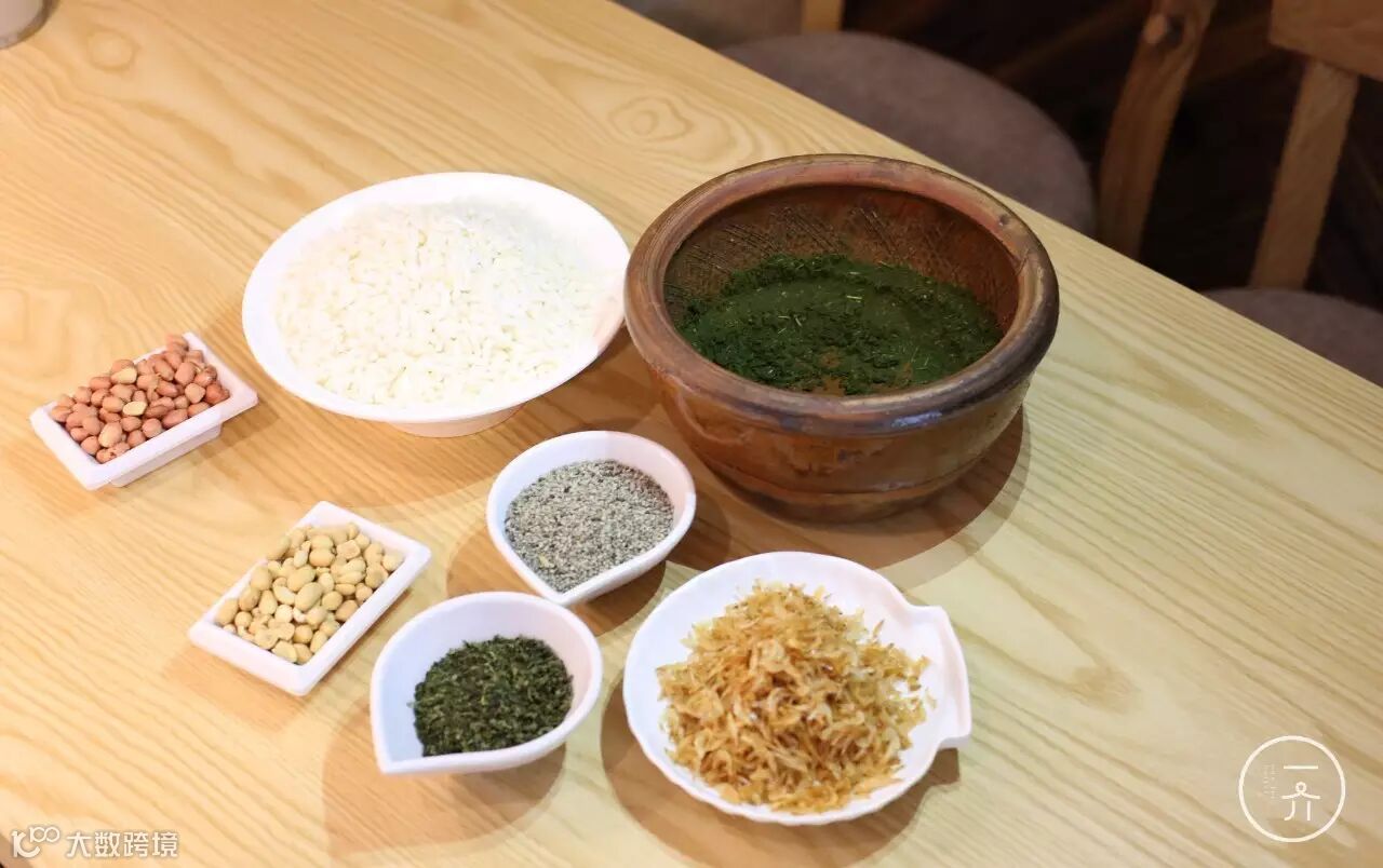 配料:绿茶叶,熟花生米,芝麻,炒米,虾皮