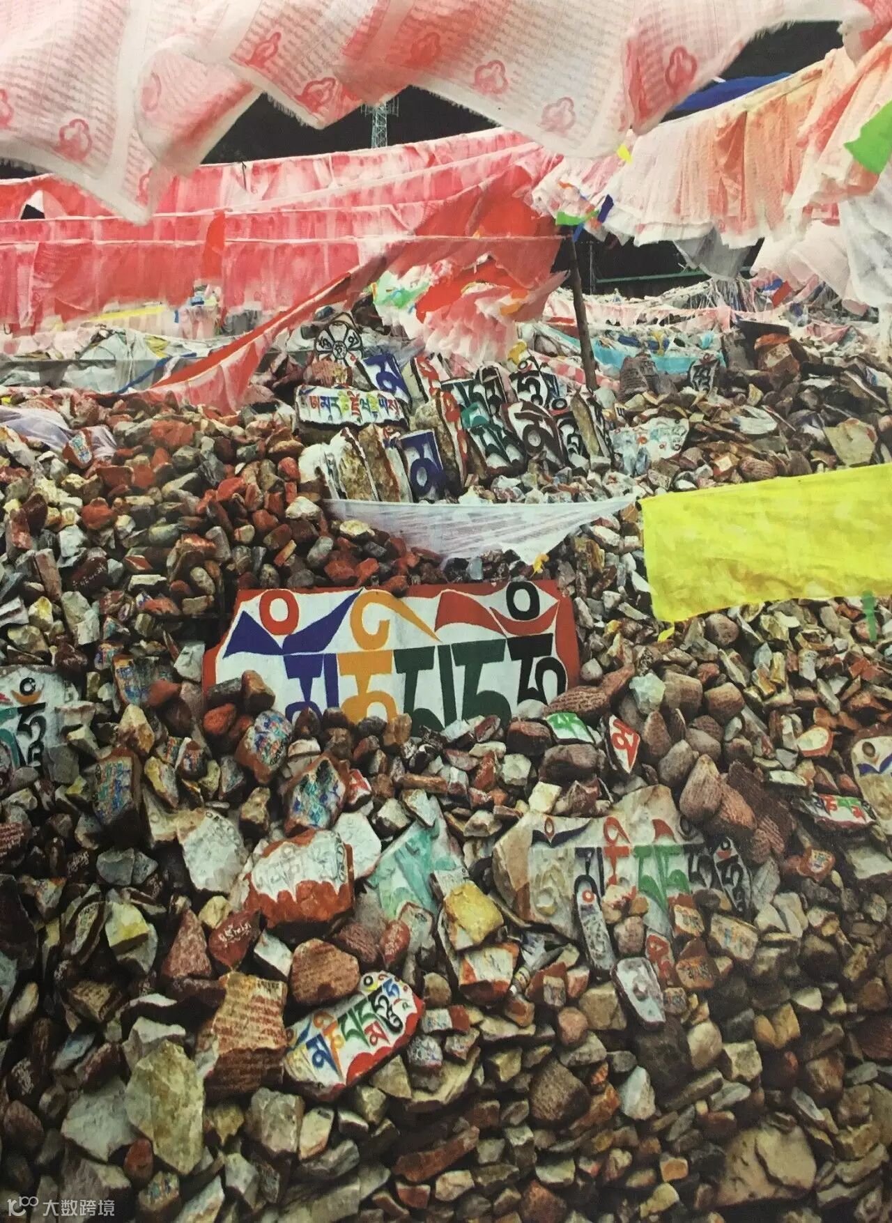 他在全球最大的经文石堆——新寨玛尼石堆前久久驻足。在地震前,这里初步统计有25亿块石头,每一块石头都刻有经文。附近的村民,祖祖辈辈都在给石头上刻经文,围绕着石堆转经念佛,别无他求,把这个当成一种信仰。