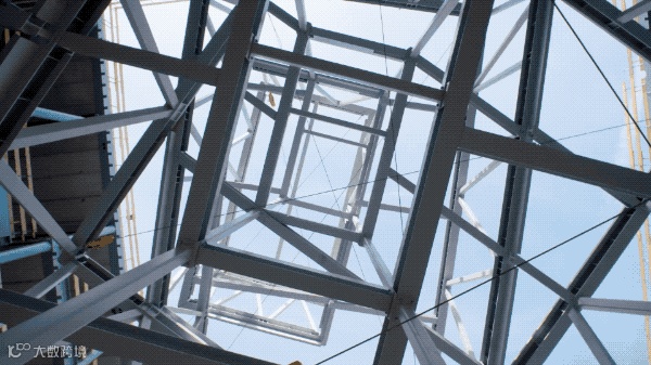 施工中的中庭结构充满几何美感 ▼