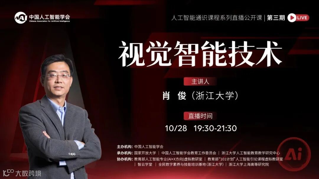 由中国人工智能学会(CAAI)主办,国家开放大学、CAAI 教育工作委员会、浙江大学人工智能教育教学研究中心联合承办的人工智能通识课程系列直播公开课特别邀请了浙江大学肖俊教授带来《视觉智能技术》的主题分享。