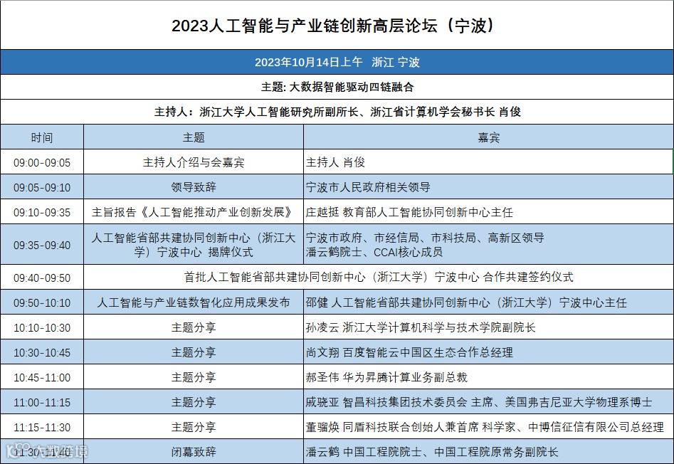 承办单位:人工智能省部共建协同创新中心(浙江大学)宁波中心(CCAI宁波中心)、 宁波城知产业链数据科技有限公司