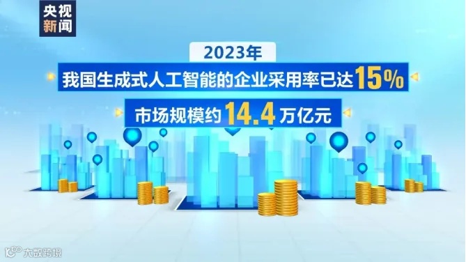 我国人工智能的蓬勃发展正在为各行各业带来全新赋能,为企业与个人的发展带来新机遇。工业和信息化部赛迪研究院发布的数据显示,2023年,中国生成式人工智能的企业采用率已达15%,市场规模约为14.4万亿元。2035年生成式人工智能有望为全球贡献近90万亿元的经济价值,中国将突破30万亿元。