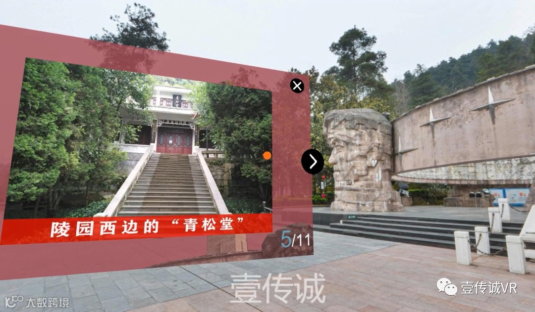 红军山烈士陵园VR全景体验,以真实的红军山烈士陵园为背景,利用VR的沉浸感带你游览整个红军山烈士陵园。体验者通过辅助设备,射线对准五角星提示位置,系统会出现语音导览讲解功能,在该项目里,体验者将会看到了红军山烈士陵园的全貌以及介绍,从陵园入口到陵园顶端的平台,经过316步台阶,每一处都伴随UI语音作详细介绍,全程共有9处语音导览讲解。从烈士纪念碑到邓萍同志陵墓,红军山烈士陵园是爱国主义教育基地,让体验者铭记历史、缅怀先烈,弘扬伟大的长征精神!