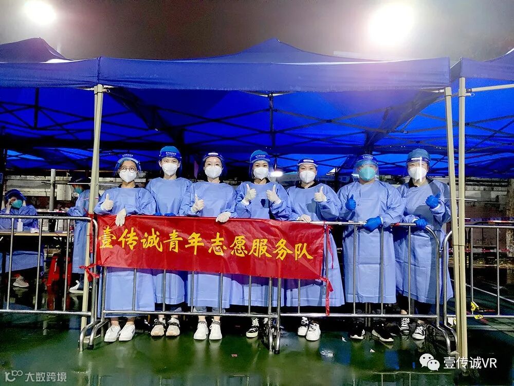 广州壹传诚信息科技有限公司作为桥南街的企业,积极担当,奉献社会,在公司两名年轻党员的带领下成立“壹传诚青年志愿服务队”,10名成员均是90、00后,以“奉献、友爱、互助、进步”为志愿服务精神,他们一直致力于社区、校园和企业开展志愿服务,通过VR/AR/MR技术在社区、校园开展各类安全教育,得到了老师学生的喜爱。4月份以来广州疫情反复,他们积极响应桥南街的号召,全体成员投身于朗陶居核酸检测点开展志愿服务。在5月7日的支援工作中,暴雨的到来为支援服务工作增加了不少难度,大家克服天气影响,耐心引导群众,维持群众秩序和安全距离,雨水渐渐打湿了他们的隔离衣,但他们依然坚守在防疫一线不松懈。这支年轻的队伍,在疫情防控期间豁得出、顶得上、靠得住。初心如磐,使命在肩,他们用实际行动致敬一直战斗在战疫一线的工作人员,也用热血和担当谱写新时代年轻人的青春赞歌。在5月16日番禺区大规模核酸检测通知发出后,壹传诚青年志愿服务队闻令而动,再次前往桥南街道朗陶居采样点协助开展大规模核酸检测工作。98年的小娜本来在这天要参加自己的生日庆祝活动,接到支援任务后主动提出要跟队伍到朗陶居开展支援工作,友爱的队员在任务结束后,向小娜送上温暖的生日祝福和鲜花,和她一起度过这次有意义的生日。