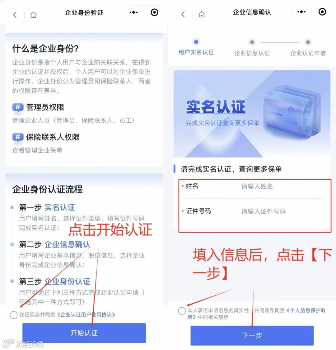 为保障企业信息安全、简化流程,实名认证后只需进行一次企业认证即可快速在线批改保单,之后无需重复认证。
