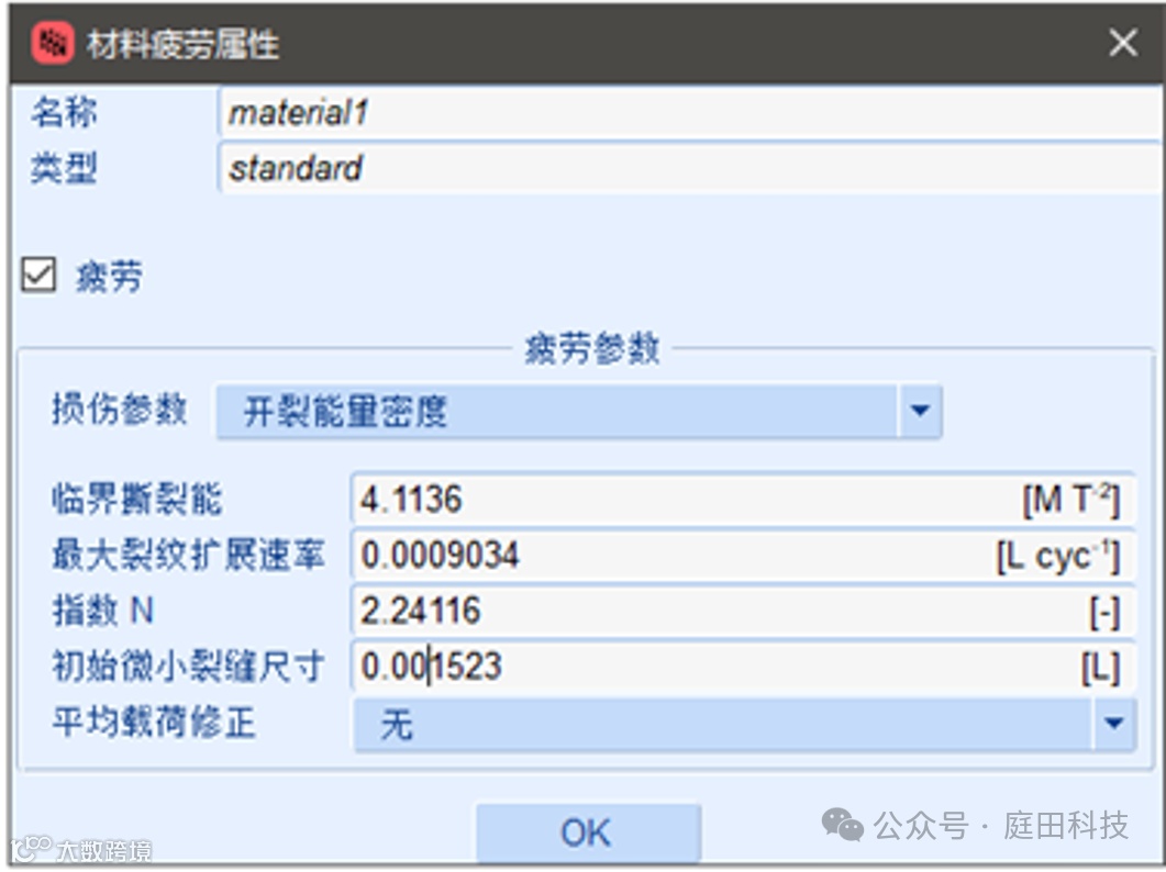 以橡胶件,衬套为例,首先在现有的橡胶材料模型参数的参数基础上,需增加用于弹性体疲劳计算的参数,如下图所示: