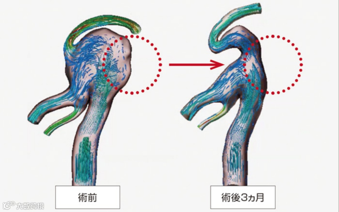 图2:手术前和手术后三个月驼峰(脑动脉瘤)消失了。