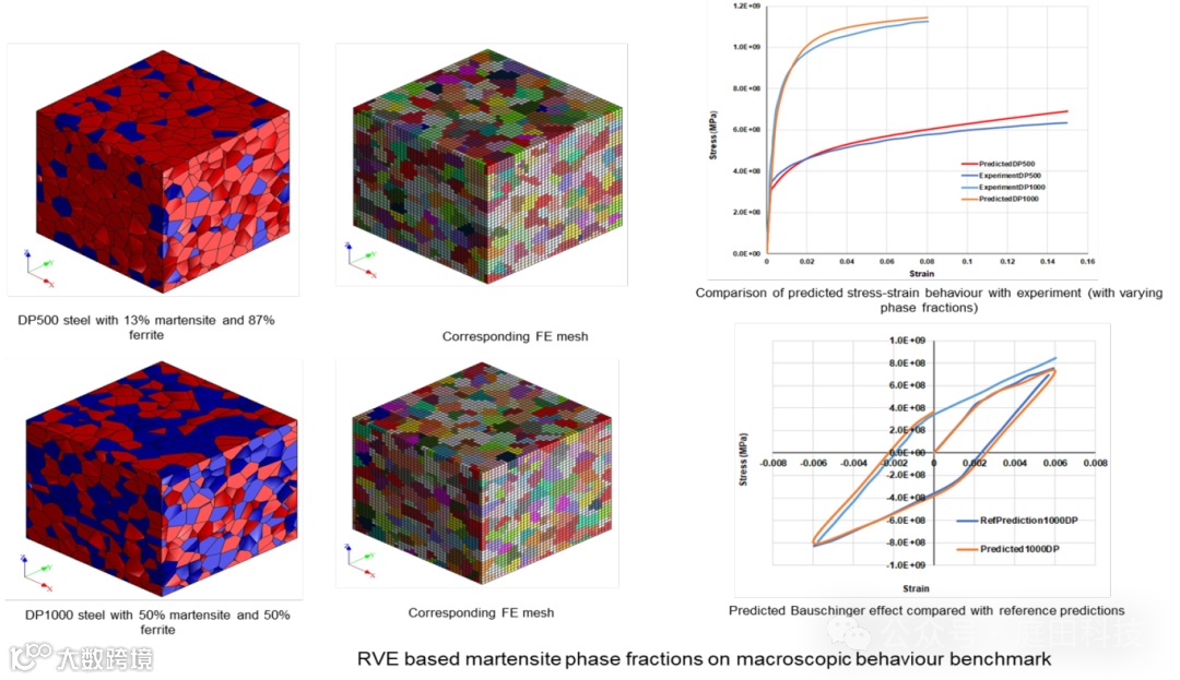 针对双相钢(DP,包含马氏体+铁氧体),通过各向同性硬化行为预测包辛格效应以及动力学参数。